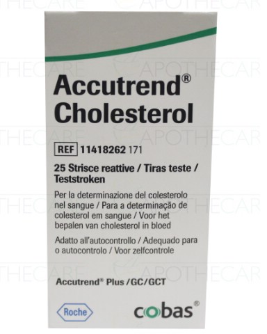 Product Name: Accutrend Total Cholesterol Strips 25'sProduct Form: StripsPack Size: 25'sMarketed By: ROCHE DIAGNOSTIC PAKISTAN LTD