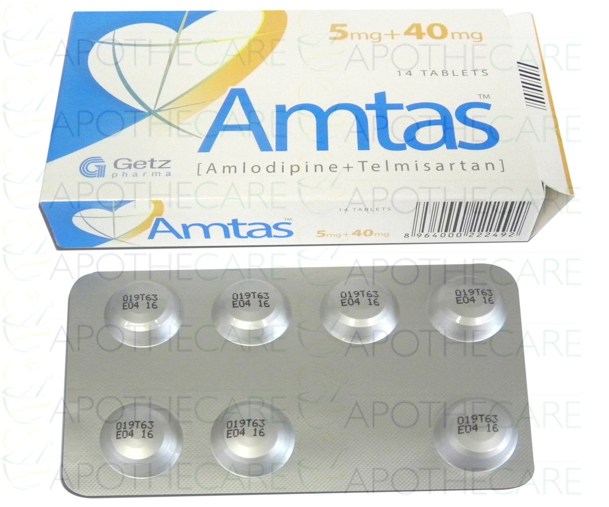 Product Name: Amtas Tab 5mg/40mg 14'sProduct Form: TabletPack Size: 14'sMarketed By: GETZ PHARMA PAKISTAN (PVT) LTDGeneric Category: ANTI-HYPERTENSIVEIngredients: Amlodipine 5mg, Telmisartan 40mg
