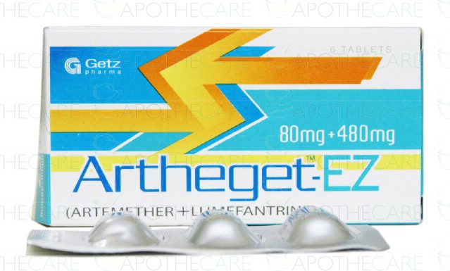 Product Name: Artheget EZ Tab 80mg/480mg 6's 96 PacksProduct Form: TabletPack Size: 96 Packs of 6'sMarketed By: GETZ PHARMA PAKISTAN (PVT) LTDGeneric Category: ANTI-MALARIALIngredients: Artemether 80mg, Lumefantrine 480mg