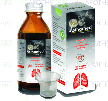 Product Name: Asthamed Natural Syp 120ml Product Form: SyrupPack Size: 120mlManufacturer: Himont Pharmaceutical (Pvt) LtdGeneric Category: Herbal PreparationIngredients: Contains the extracts of the followings: Bombyx morilinn.Ephedra vulgans. Glycyrrhiza glabra, Adhatoda vasica, Viola odorata