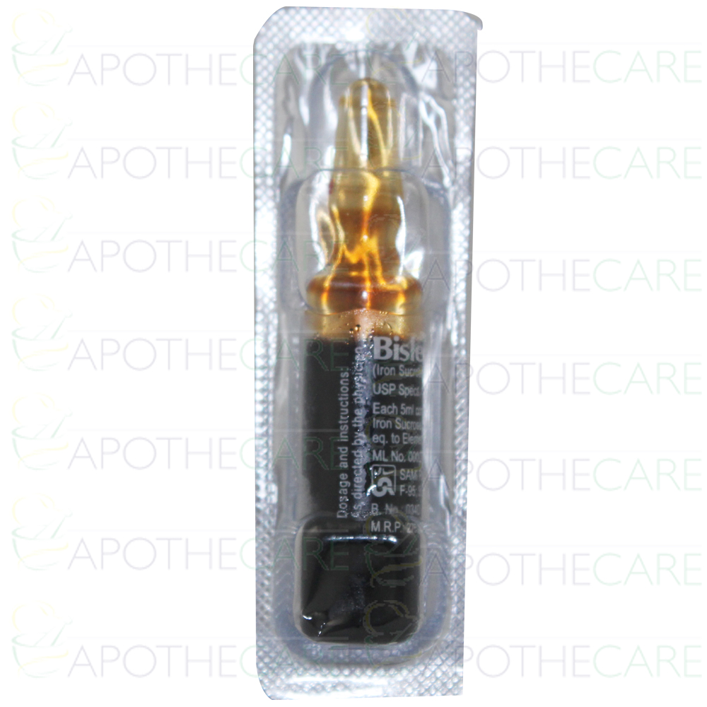 Product Name: Bisleri-S Inj 100mg 5 Ampx5mlProduct Form: InjectionPack Size: 5Ampx5mlMarketed By: SAMI PHARMACEUTICALSGeneric Category: ANTI-ANEMICIngredients: Iron Sucrose Complex 100mg/5mlStorage Condition: Store at 2 - 80C (Do not freeze)