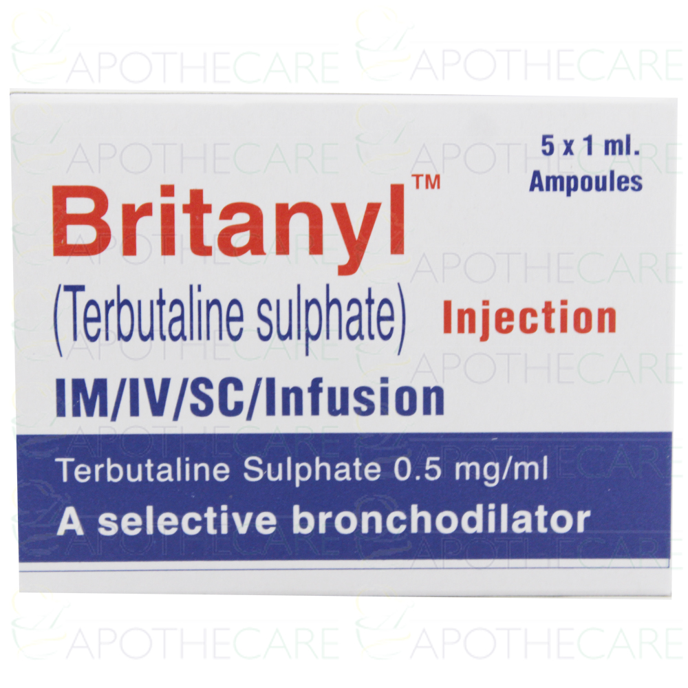 Product Name: Britanyl Inj 0.5mg 5Ampx1mlProduct Form: InjectionPack Size: 5Ampx1mlMarketed By: BARRETT HODGSON PAKISTAN (PVT) LTDGeneric Category: B2 Stimulant