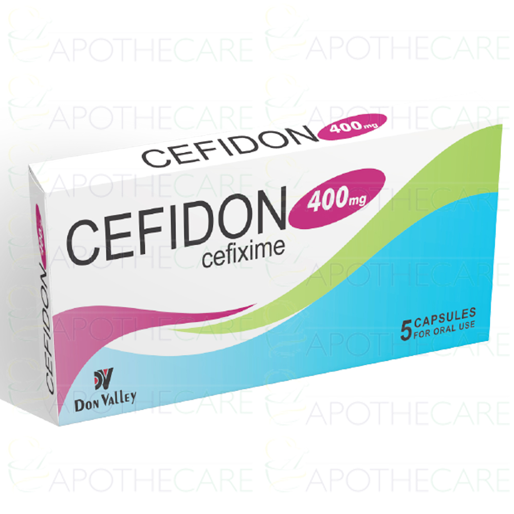 Product Name: Cefidon Cap 400mg 5'sProduct Form: CapsulesPack Size: 5'sManufacturer: DON VALLEY PHARMA (PVT) LTDGeneric Category: CEPHALOSPORIN ANTIBIOTICIngredients: Cefixime Trihydrate
