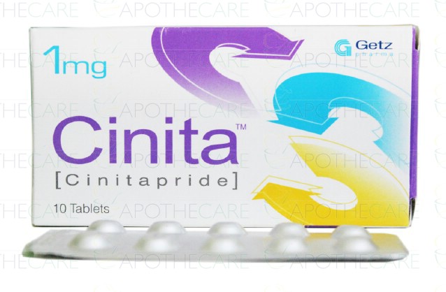 Product Name: Cinita Tab 1mg 10's 128 PacksProduct Form: TabletPack Size:128 Packs of 10'sMarketed By: GETZ PHARMA PAKISTAN (PVT) LTDGeneric Category: GASTROPROKINETICIngredients: Cinitapride