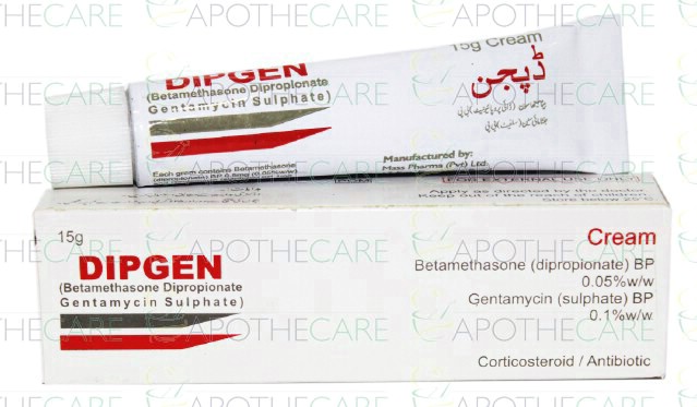 Ingredients: Betamethasone Dipropionate 0.05%, Gentamycin Sulphate 0.1%