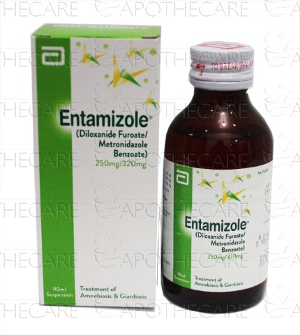 Product Name: ENTAMIZOLE Susp 90mlProduct Form: SuspensionPack Size: 90mlMarketed By: ABBOTT LABORATORIES (PAKISTAN) LTDGeneric Category: Anti-amoebicIngredients: Each 10ml contains Diloxanide furoate 250mg, Metronidazole 200mg
