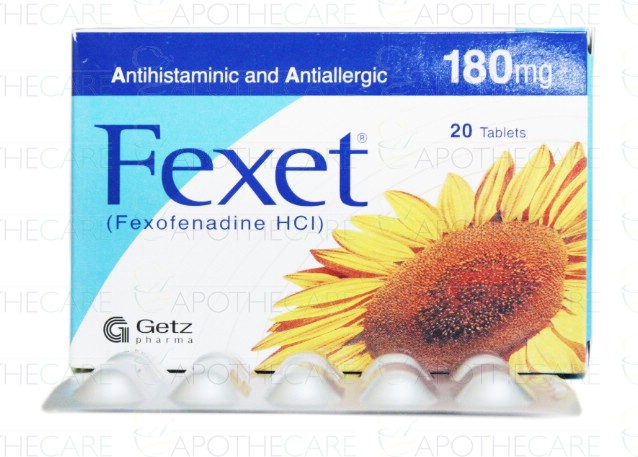 Product Name: Fexet Tab 180mg 20's 96 PacksProduct Form: TabletPack Size: 96 Packs of 20'sMarketed By: GETZ PHARMA PAKISTAN (PVT) LTDGeneric Category: ANTI-HISTAMINEIngredients: Fexofenadine