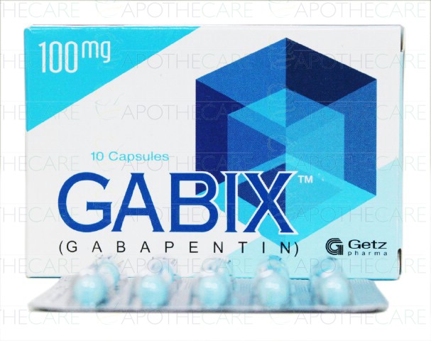 Product Name: Gabix Cap 100mg 10's 114 PacksProduct Form: CapsulesPack Size:144 Packs of 10'sMarketed By: GETZ PHARMA PAKISTAN (PVT) LTDGeneric Category: Neuropathic pain/Anti-epilepticIngredients: Gabapentin