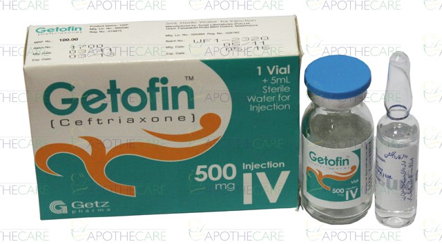 Product Name: Getofin IV Inj 500mg 1Vial 200 PacksProduct Form: InjectionPack Size: 200 Packs 1VialMarketed By: GETZ PHARMA PAKISTAN (PVT) LTDGeneric Category: CEPHALOSPORIN ANTIBIOTIC