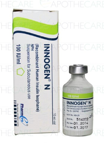 Product Name: Innogen N Inj 100IU 1Vialx10mlProduct Form: InjectionPack Size: 1Vialx10mlMarketed By: PHARM-EVO (PVT) LTD.Generic Category: Intermediate Acting InsulinIngredients: Recombinant Human Insulin Isophane NPH