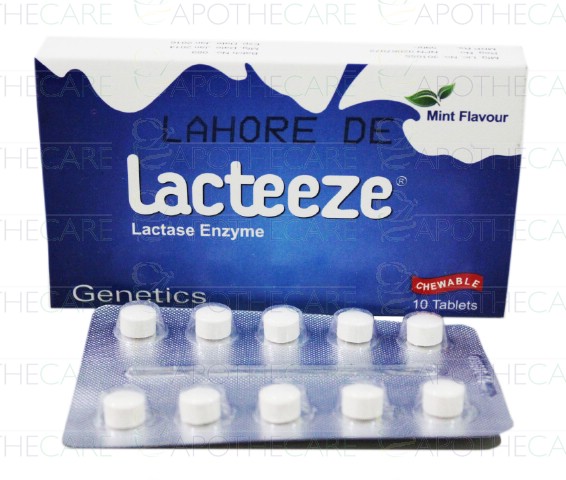 Product Name: Lacteeze Tab 10'sProduct Form: TabletsPack Size: 10'sMarketed By: Genetics PharmaceuticalsGeneric Category: Digestive EnzymeIngredients: Lactase Enzyme