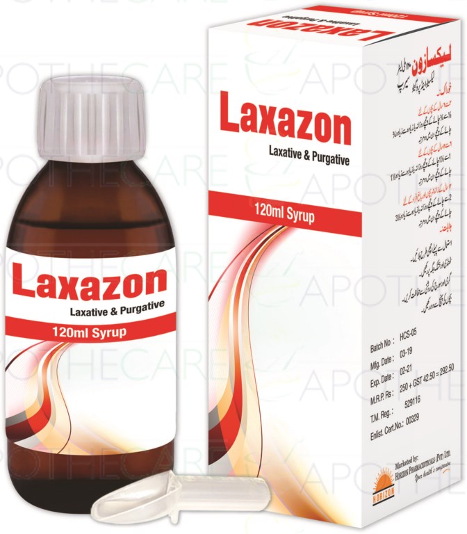 Product Name: Laxazon Syp 120mlProduct Form: SyrupPack Size: 120mlMarketed By: Horizon Pharmaceuticals (PVT) LTDGeneric Category: CONSTIPATION TREATMENTIngredients: Laxative & Purgative