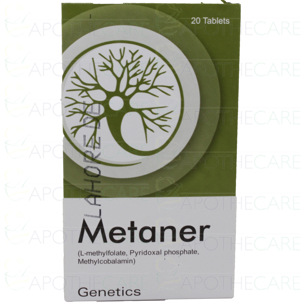 Product Name: Metaner Tab 20'sProduct Form: TabletsPack Size: 20'sManufacturer: Genetics Pharmaceuticals Pvt LtdGeneric Category: Anti-AnemicIngredients: L-Methylfolate, Pyridoxal 5-phosphate Methylcobalamin