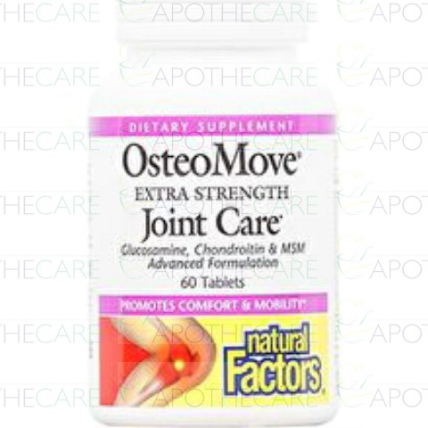 OsteoMove Extra Strength Joint Care from Natural Factors provides fast relief from acute and chronic pain and has extensive long-term benefits for joint health. A powerful anti-inflammatory, OsteoMove slows down cartilage degeneration, maintains strong and healthy bones, and encourages the repair of connective tissue.