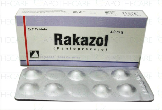 Product Name: Rakazol Tab 40mg 20's 560 PacksProduct Form: TabletsPack Size: 560 Packs of 20'sMarketed By: Rakaposhi PharmaceuticalsGeneric Category: Anti-ulcerantIngredients: PANTOPRAZOLE 40mg