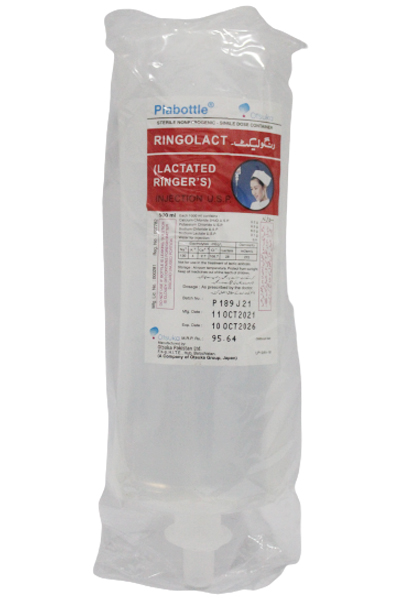 Product Form: Infusion Pack Size: 1000mlMarketed By: OTSUKA PAKISTAN LTDGeneric Category: Ringer's and Ringer Lactate SolutionIngredients: Calcium Chloride 2H2O 0.2 g, Potassium Chloride 0.3g, Sodium Chloride 6g, Sodium Lactate 3.1g
