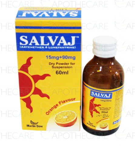Product Name: Salvaj Susp 60ml Product Form: SuspensionPack Size: 60mlMarketed By: MARTIN DOW PHARMACEUTICAL LIMITEDGeneric Category: Anti-MalarialIngredients: Each 5ml contains Artemether 15mg, Lumefantrine 90mg