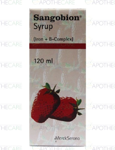Product Name: Sangobion Syp 120mlProduct Form: SyrupPack Size: 120mlMarketed By: Martin Dow Pharmaceuticals (Pak) LtdGeneric Category: Anti-AnemicIngredients: Iron With Vitamin B Complex Preps