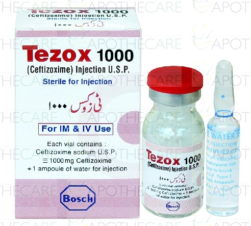 Product Name: Tezox Inj 1gm 1VialProduct Form: InjectionPack Size: 1 VialMarketed By: BOSCH PHARMACEUTICALS (PVT) LTDGeneric Category: CEPHALOSPORIN ANTIBIOTICIngredients: Ceftizoxime