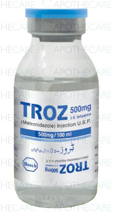 Product Name: Troz IV Inf 500mg 1Vialx100mlProduct Form: InfusionPack Size: 1Vialx100mlMarketed By: BOSCH PHARMACEUTICALS (PVT) LTDGeneric Category: Anti-ameobicIngredients: Metronidazole