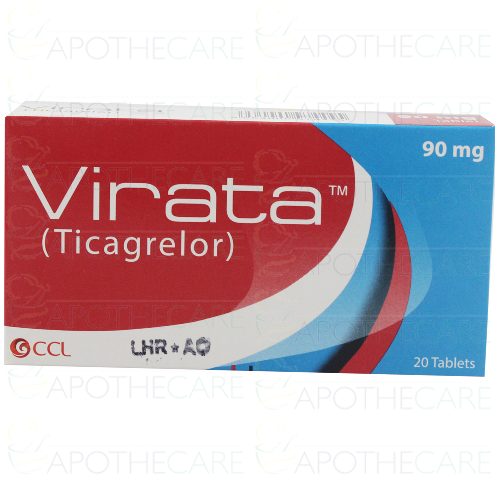 Product Name: Virata Tab 90mg 20'sProduct Form: TabletsPack Size: 20'sManufacturer: CCL PharmaceuticalsGeneric Category: Platelet Aggregation InhibitorsIngredients: Ticagrelor 90mg