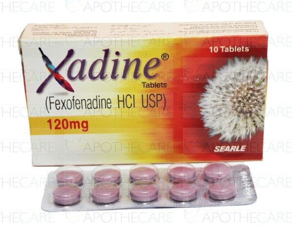 Product Name: XADINE Tab 120mg 10'sProduct Form: TabletsPack Size: 10'sMarketed By: SEARLE PAKISTAN Generic Category: ANTI-HISTAMINEIngredients: Fexofenadine